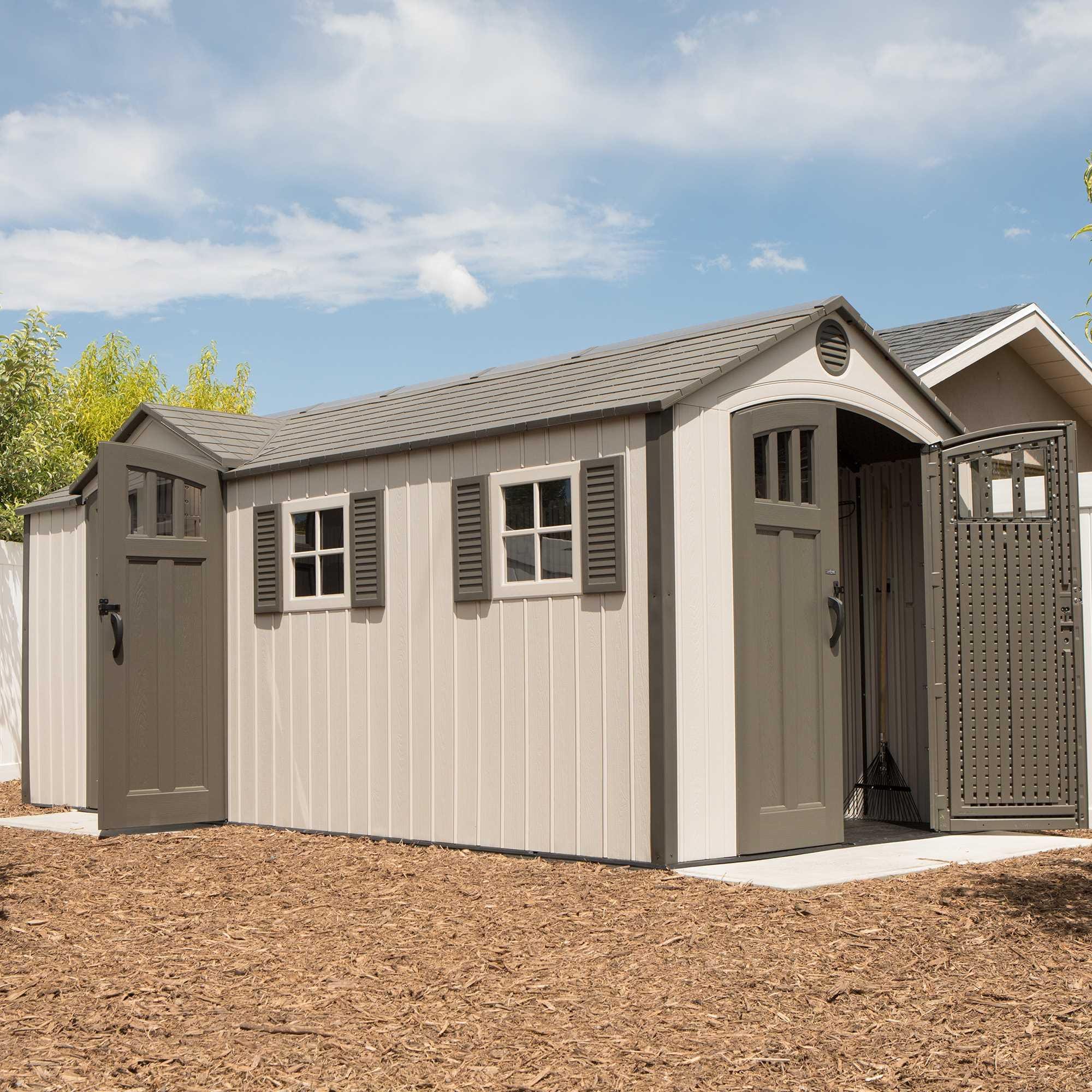 Lifetime 17.5 x 8 Dual Entry Heavy Duty Outdoor Plastic Shed – 17×8ft Dual Entry – Large Plastic Garden Storage Shed with Floor